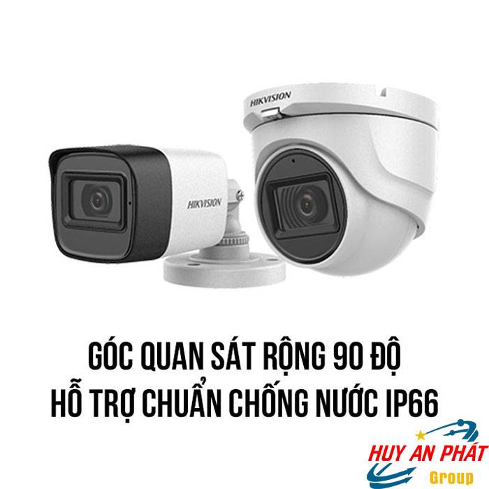 Trọn bộ camera 2 mắt Hikvision có thiết kế theo tiêu chuẩn bảo vệ IP66 nhờ đó bạn có thể lắp đặt camera ngoài trời mà không cần sợ camera bị vô nước.