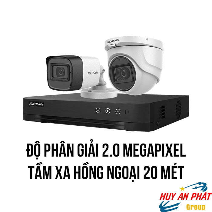 Trọn bộ 02 camera Hikvision thích hợp lắp đặt trong phòng và ngoài trời camera độ phân giải 2.0MP (1080P) cho hình ảnh sắc nét, tầm quan sát 20m và hỗ trợ hồng ngoại quán sát ban đêm, rất phù hợp lắp đặt cho gia đình, cửa hàng, văn phòng, shop thời trang, trường mầm non, nhà trọ, tiệm vàng,…