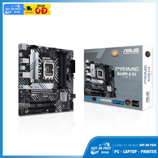 Dòng bo mạch chủ ASUS Prime được thiết kế chuyên nghiệp để phát huy hết tiềm năng của bộ vi xử lý Intel Thế hệ thứ 12. Tự hào với thiết kế năng lượng mạnh mẽ, giải pháp làm mát toàn diện và các tùy chọn điều chỉnh thông minh, Prime B660 cung cấp cho người dùng và các nhà xây dựng PC DIY một loạt các tùy chọn điều chỉnh hiệu suất thông qua các tính năng phần mềm và phần mềm trực quan. ASUS PRIME B660M-A D4-CSM mang đến một thiết kế đẹp mắt, mang phong cách tương lai với lớp hoàn thiện màu đen và trắng, các yếu tố thiết kế lấy cảm hứng từ tàu con thoi, bảng tên bằng kim loại và vỏ PCB.