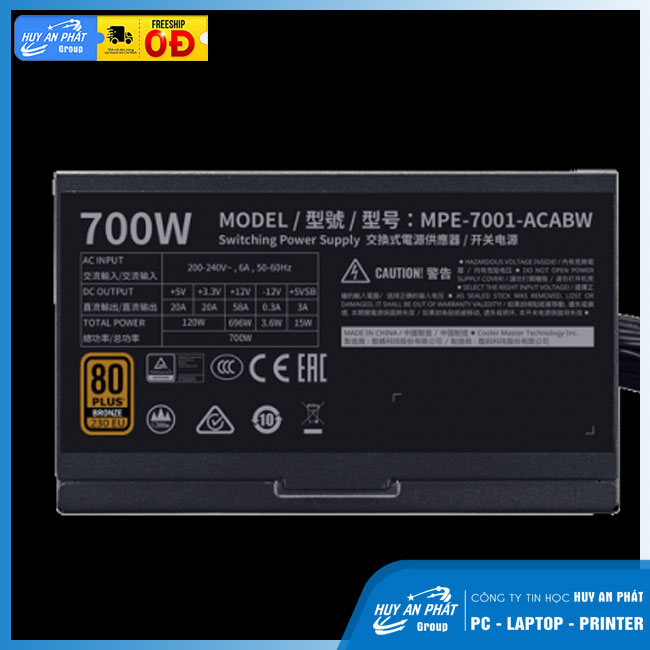 Tính năng nổi bật Nguồn Cooler Master 700W MWE 700 V2 230V 80 Plus Bronze