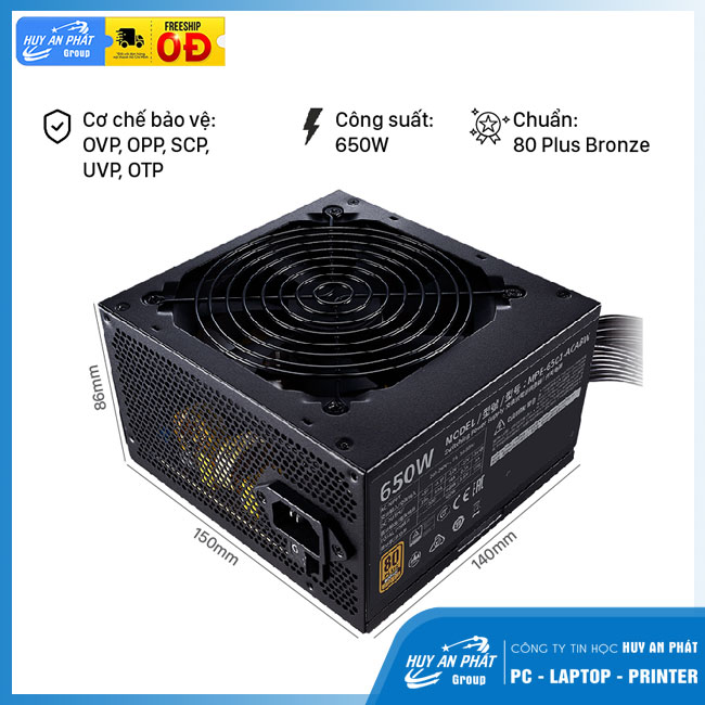 Nguồn máy tính Cooler Master MWE V2 230V 650 650W Plus Bronze (80 Plus Bronze/Màu Đen) trang bị đường 12V single rail